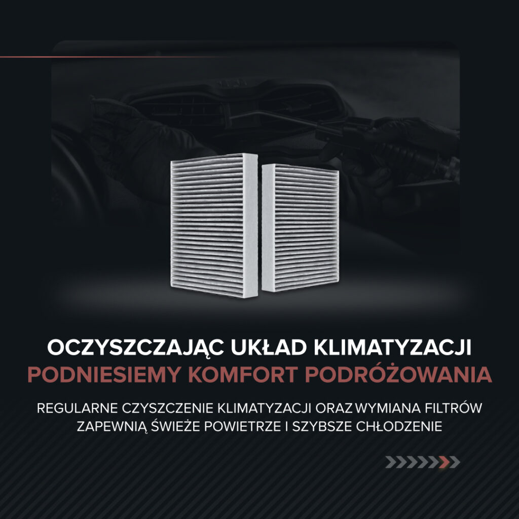 Zimą klimatyzacja pracuje w trudnych warunkach, gromadząc wilgoć, kurz i bakterie. To idealne środowisko dla pleśni i nieprzyjemnych zapachów, które mogą wpływać na komfort podróży i zdrowie. Wiosna to najlepszy moment, by zadbać o czystość układu klimatyzacji oraz wymienić filtr kabinowy!